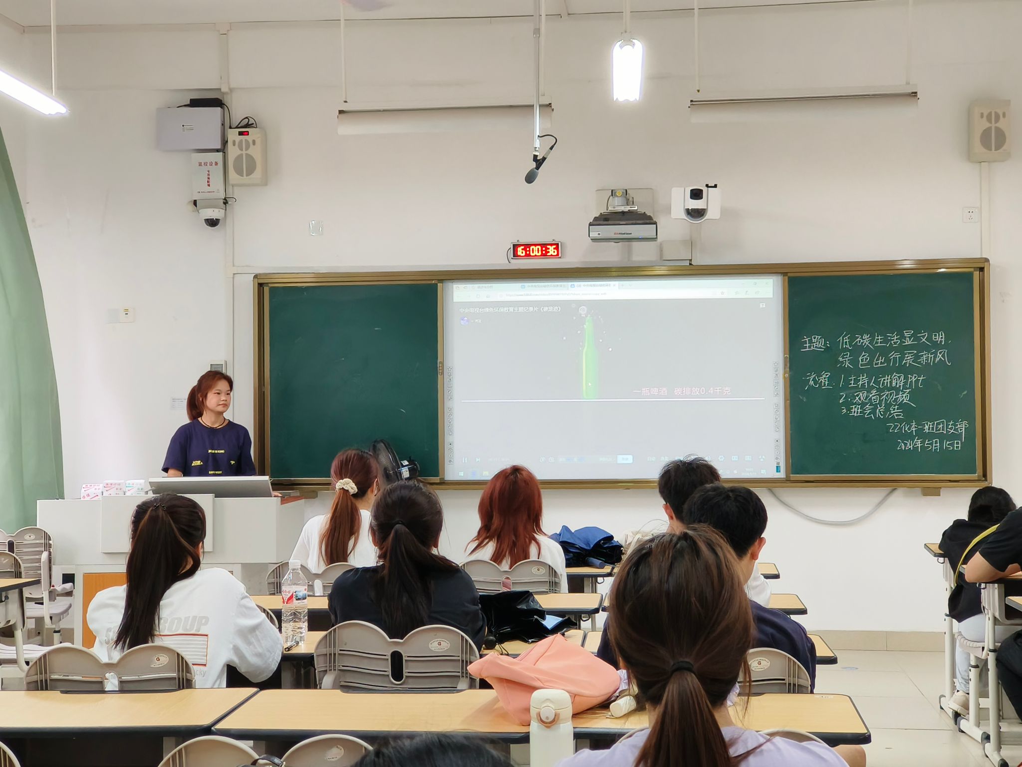 22化本一班于5月15日在武鸣校区1号教学楼202教室开展“低碳生活显文明,绿色出行展新风”的主题班会,此次班会由黄长萱同学主持,22化本一班全体同学参加。同学们通过讨论、分享和实践,深入了解低碳生活的理念,倡导绿色出行方式,展现新时代学生的文明新风。