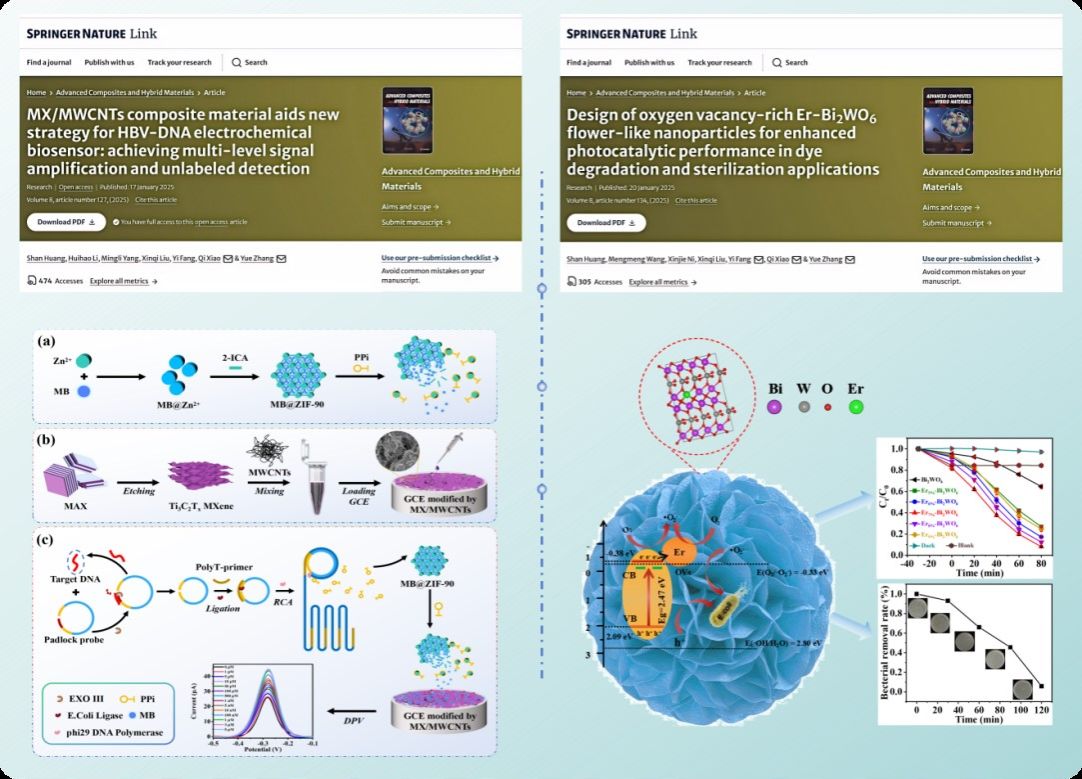 研究团队近期在功能纳米材料生物传感与光催化应用领域取得重要进展,两项创新成果连续发表于材料科学领域国际权威期刊《Advanced Composites and Hybrid Materials》(JCR一区,复合材料排名1/35,2024年IF 23.2)。两项成果均以美女视频
