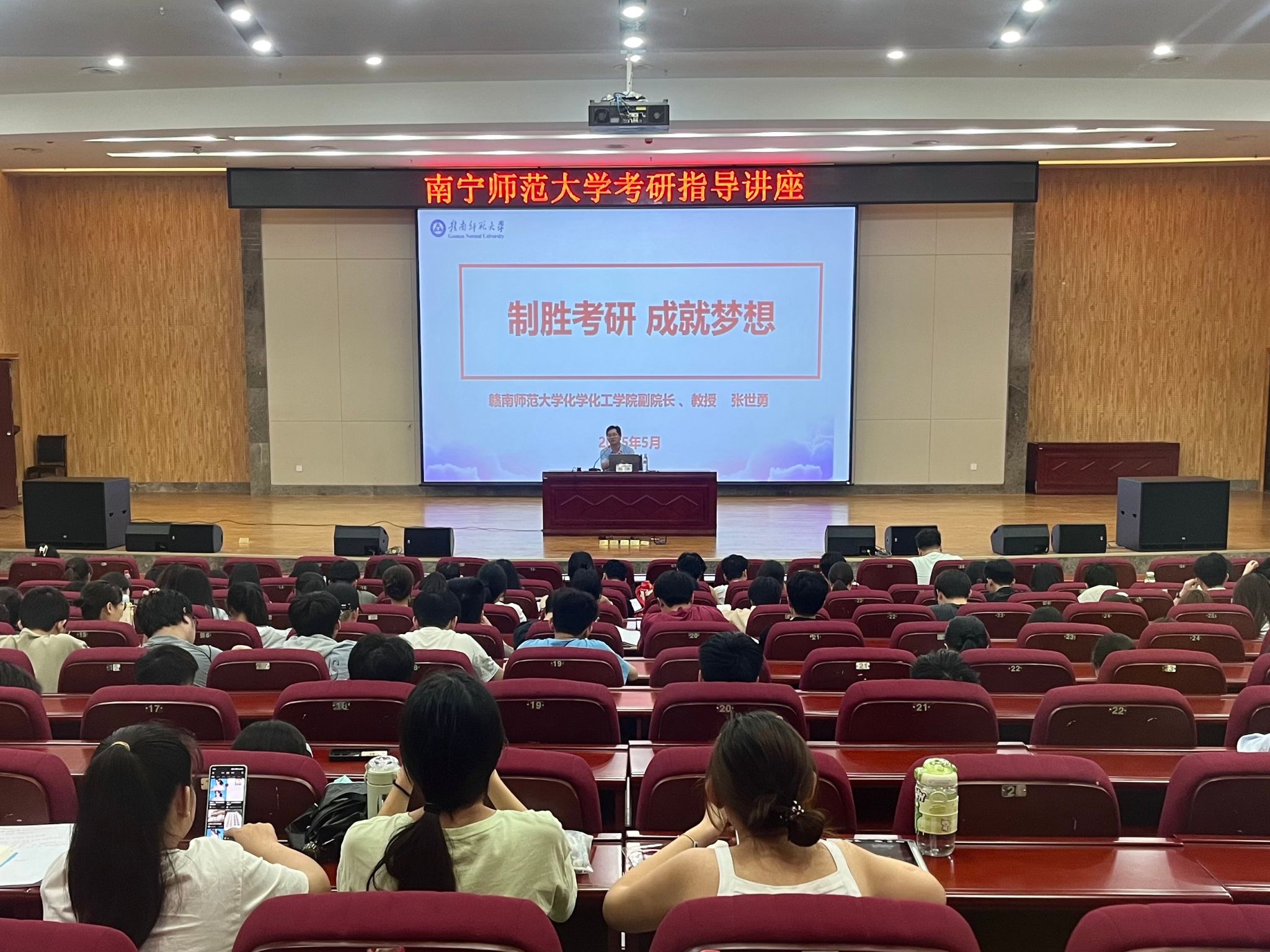 于5月25日在武鸣校区图书馆报告厅成功举办考研指导讲座。本次讲座由赣南师范大学化学化工学院张世勇博士、教授主讲,讲座主题为《制胜考研 成就梦想》,武鸣校区有意向考研的同学参会。