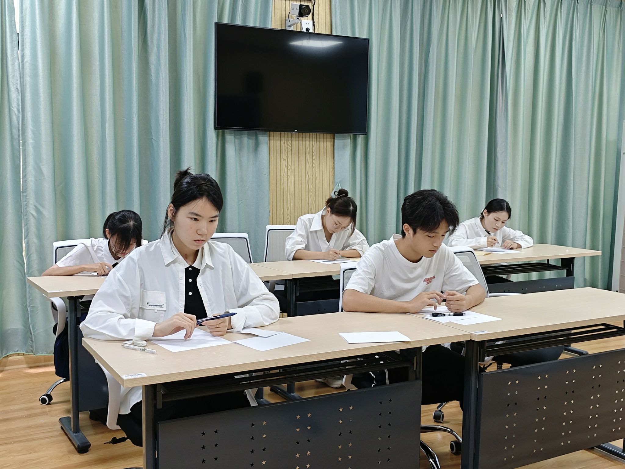 选拔工作采用"三轮考核、优中选优"的遴选机制,包含初试面试、专业笔试和复试面试三个环节。经过严格筛选,44名优秀学子从众多报名者中脱颖而出,进入最终考核环节。复试面试邀请了学院苏炜院长、陈今浩副书记、杨晶副院长及陈思静、汤希雁和吴希蕾等三位老师组成评审委员会。考核采用"随机抽题+模拟授课+现场答辩"的形式,全面考察学生的教学基本功、专业素养和教育理念。
