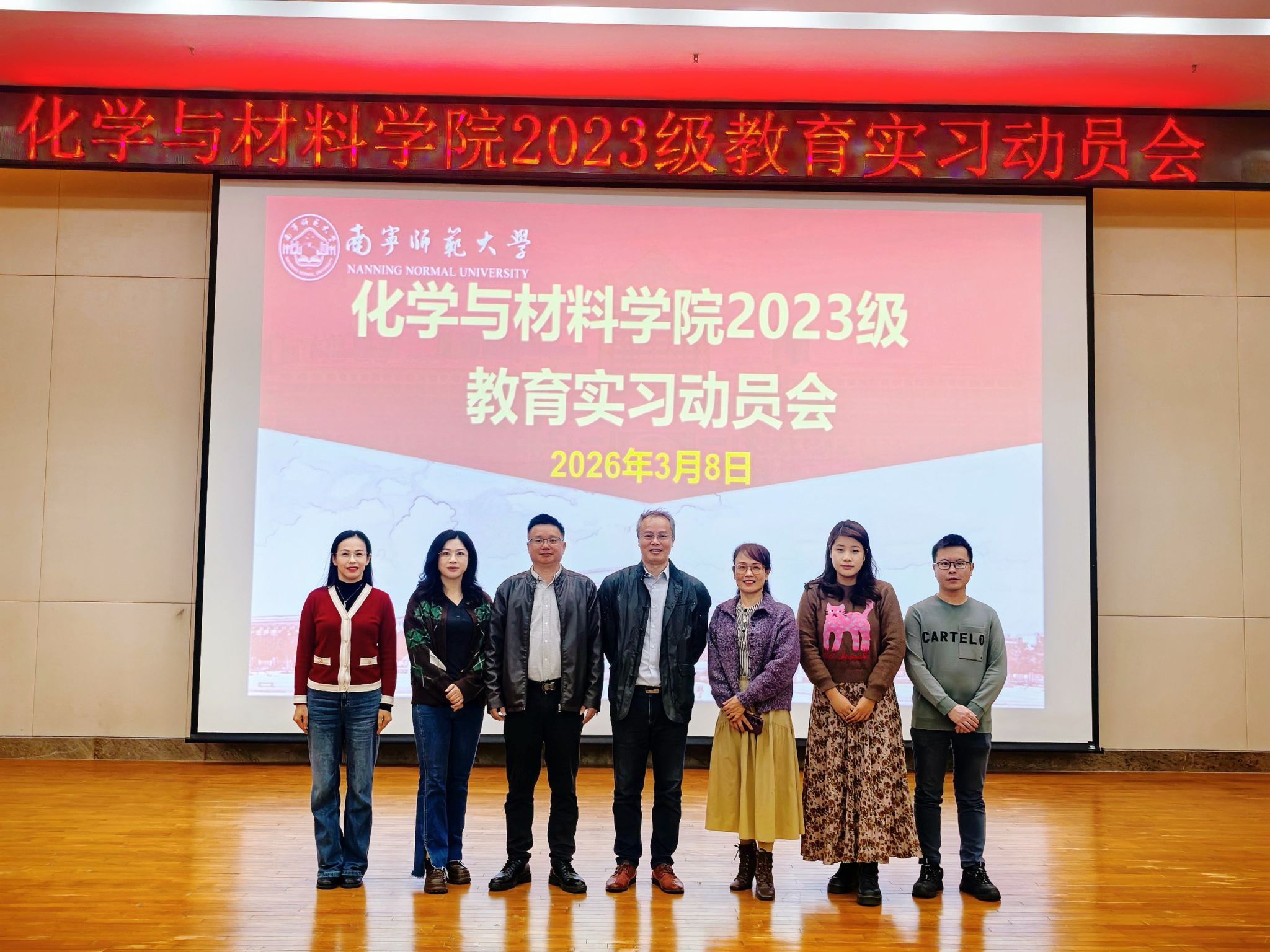 武鸣校区图书馆报告厅召开2023级化学专业师范生教育实习动员大会。学院党委苏学权副书记(主持党委工作)、党委陈今浩副书记、朱汝葵副院长、现代化学教育技术教研室美女视频